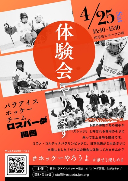 パラアイスホッケーチーム「ロスパーダ関西」主催による体験会が開催されます。